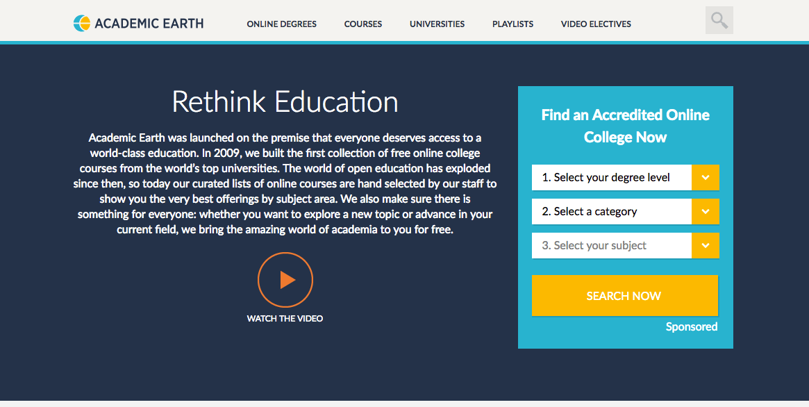 We've broken down the most popular degrees in … Learn online and earn valuable credentials from top universities like yale, michigan, stanford, and leading companies like google and ibm. Touch device users, explore by touch or with swipe gestures. Alongside, helpful links regarding academicearth org sign up are also. Log in sign up academic earth academicearth.org·@academicearth· online courses from leading universities.